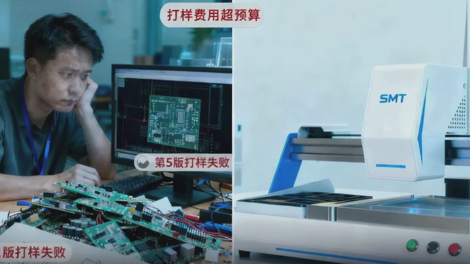 MINIS1 Desktop SMT Pick and Place Machine: Stylish, compact, prototyping-focused! Plug-and-play with self-developed software (beginners friendly), dual-vision calibration, supports visual trays/loose parts/taped components. Streamlined one-click operation vs X1 Fly-Shoot, space-saving for workshops/labs, cost-effective with lifetime maintenance!